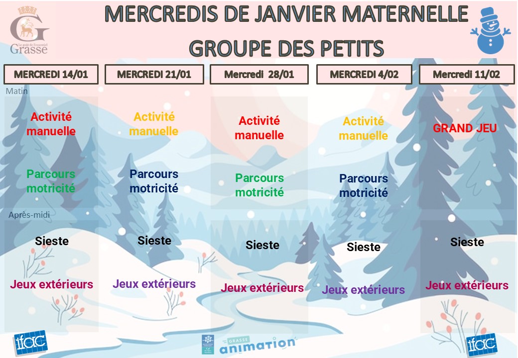 Nos plannings des mercredis les Cigales et St Jacques !!