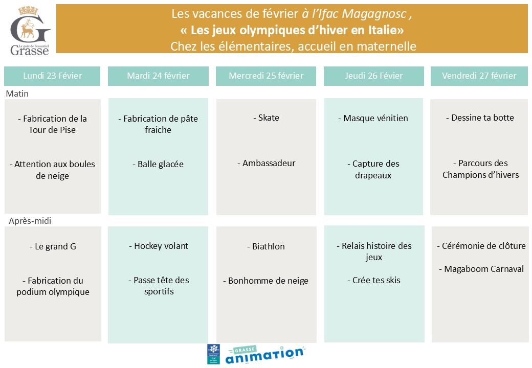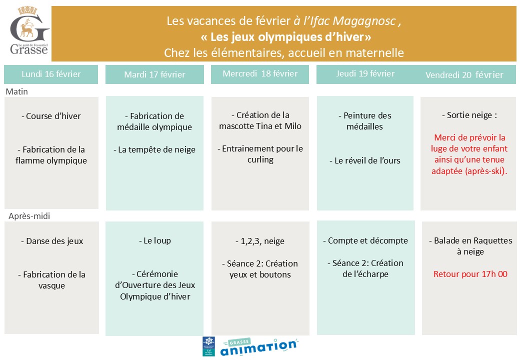 Accueil > Actualités > Nos plannings pour les vacances de février en élémentaire Nos plannings pour les vacances de février en élémentaire Planning Téléchargez nos programmes Groupe élémentaire 1ère semaine Groupe élémentaire 2ème semaine