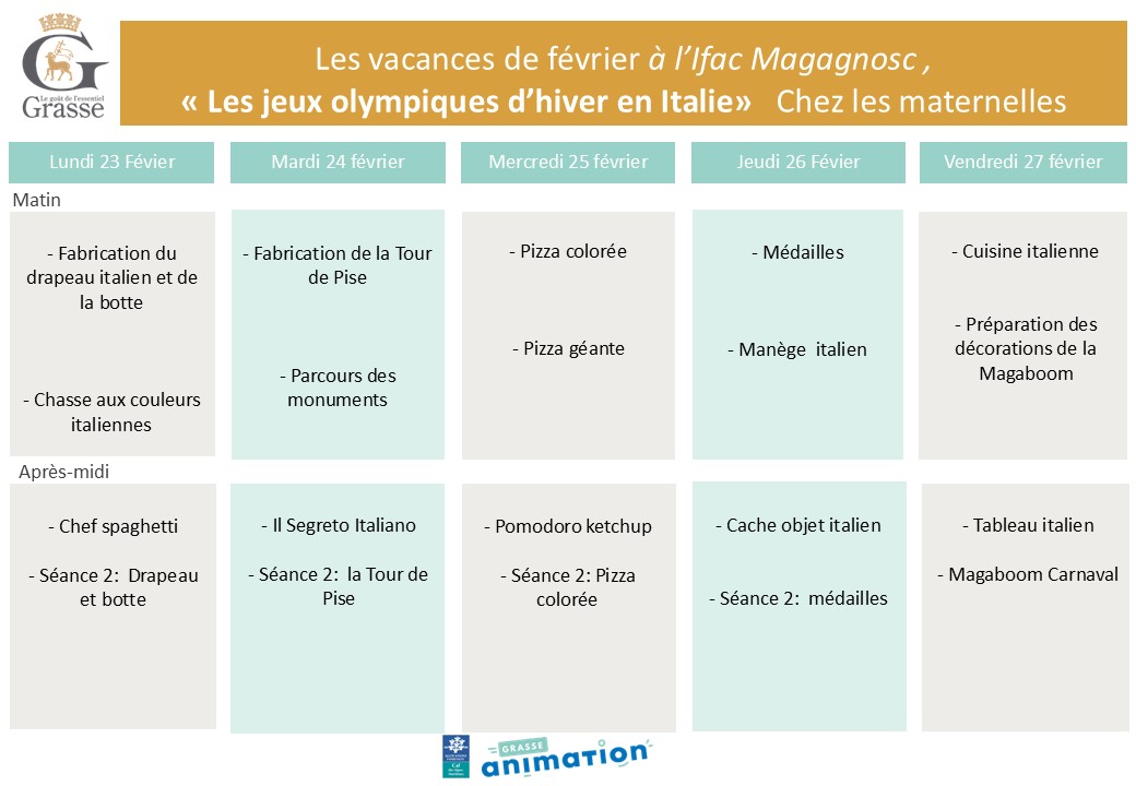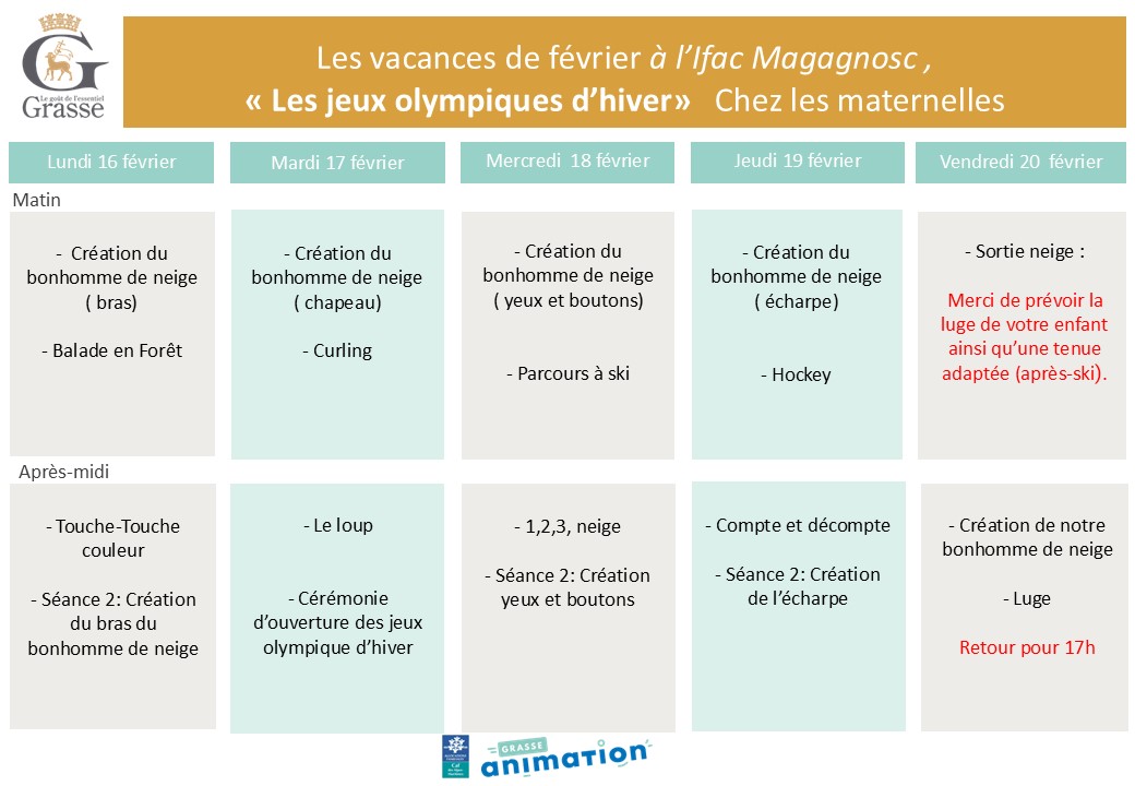 Accueil > Actualités > Nos plannings pour les vacances de février en maternelle Nos plannings pour les vacances de février en maternelle Planning Téléchargez nos programmes Groupe Maternelle 1ère semaine Groupe maternelle 2ème semaine